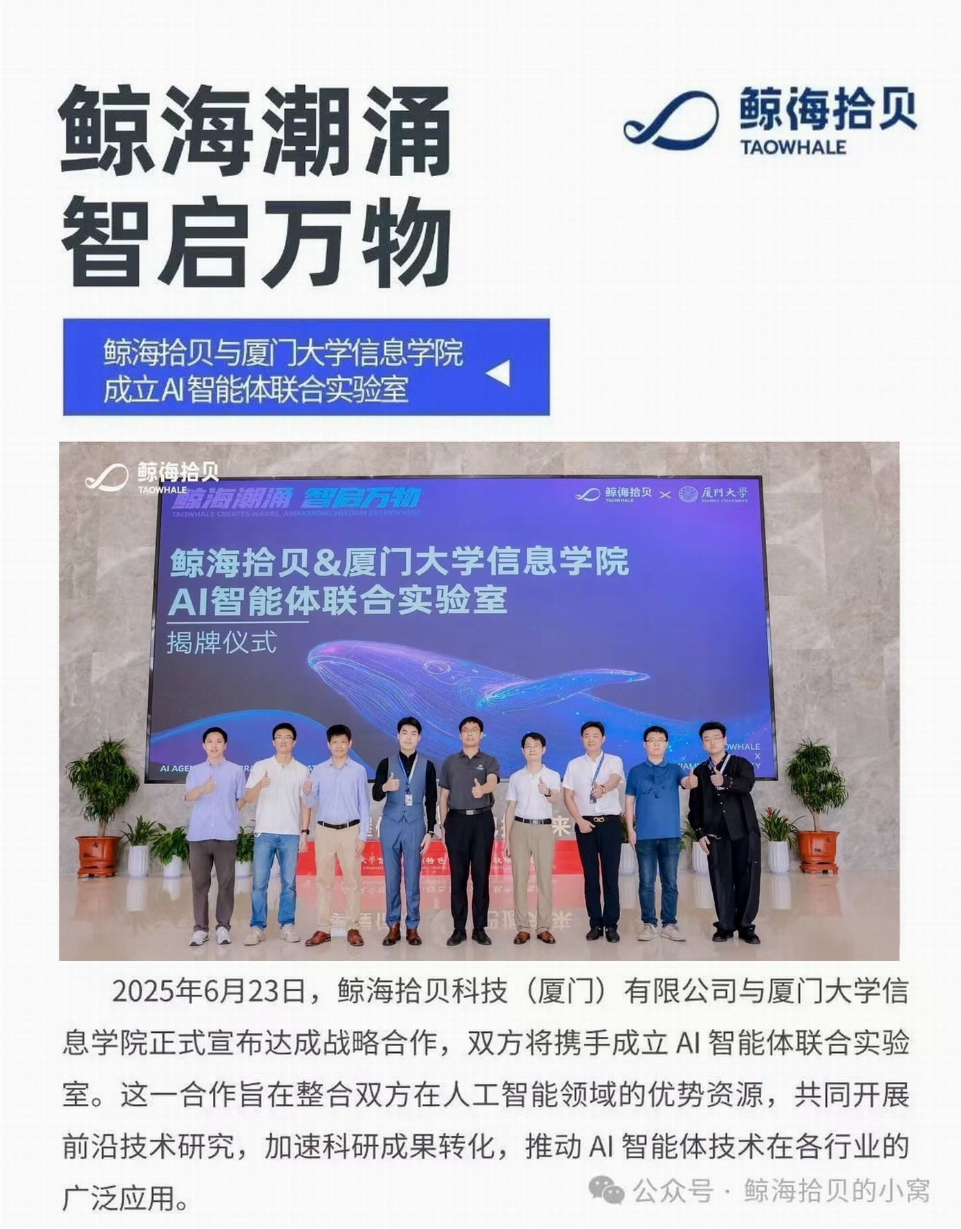 鲸海拾贝&厦门大学成立AI智能体联合实验室
