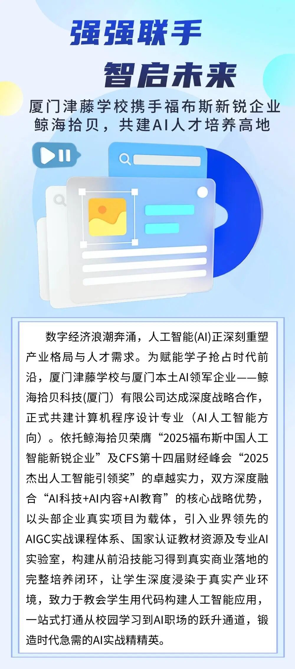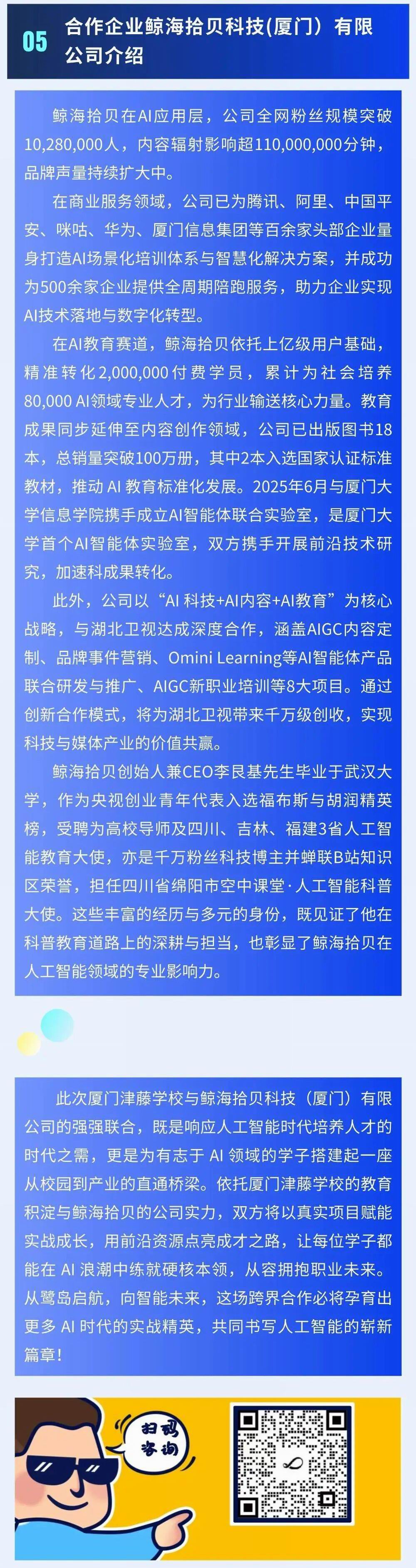 鲸海拾贝&厦门津藤学校共建AI人才培养高地