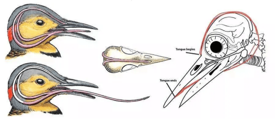 为什么是这个问题,这个问题的答案又是什么?多年后,生物学家才发现答案。啄木鸟用嘴敲击树木的瞬间冲量足以令人脑震荡,而啄木鸟的舌头是鸟嘴的3倍长,这种“弹式装置”的舌头竟然能伸出喙外达12厘米长,而且颅内部分的舌头竟然绕了头骨一周,正是舌头保护了啄木鸟的大脑,不会因为高频的敲击而晕倒,同时它额外的长度,还能棒啄木鸟舔食洞中的虫子。