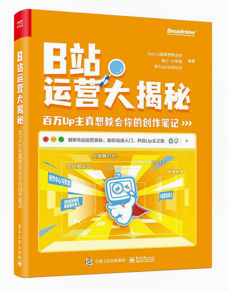 本书由B站上的三位Up主(Genji是真想教会你、鱼C-小甲鱼、阿Test正经比比)联合打造,为读者提供了B站定制运营秘籍。全计8章。1章讲解B站的特点算法、文化、分区和会员等级,以及如何在B站注册账号及投稿。2章讲解在B站投稿前要知道的事儿,涉及怎样找到自己的人设,什么是好的用户名,如何策划选题,如何创作及填写更好的投稿信息。3章详细介绍B站创作中心与帮助方面的内容,涉及内容管理、数据中心、粉丝管理、互动管理、收益管理、创作成长、创作权益、合协作、创作实验室、社区公约、创作设置、帮助等。4章讲解常用的录制设备括拍摄器材、音频采集设备、补光灯、画面稳定设备及其他配件。5章讲解剪的主界面、常用剪能,以及音乐和音效、文字、画布、画中画、贴纸能,同时提供了关于剪辑思维的实用建议。6章讲解了粉丝运营秘籍,涉及之间的跳转、合集、分P稿件机制、互动很强的5类弹幕、一键三连、定期投稿、联合投稿,以及从其他平台引流的技巧。7章深入讲解直播方面的内容,涉及开通直播、直播设备要求、直播设置、直播分区、直播技巧及直播玩法等。8章讲解高手会遇到的问题和挑战,涉及是做全职还是做、背后的痛点、账号生命周期、分发策略、是否组建团队、打造账号矩阵、竖版、热门选题、黄金发布时间等。