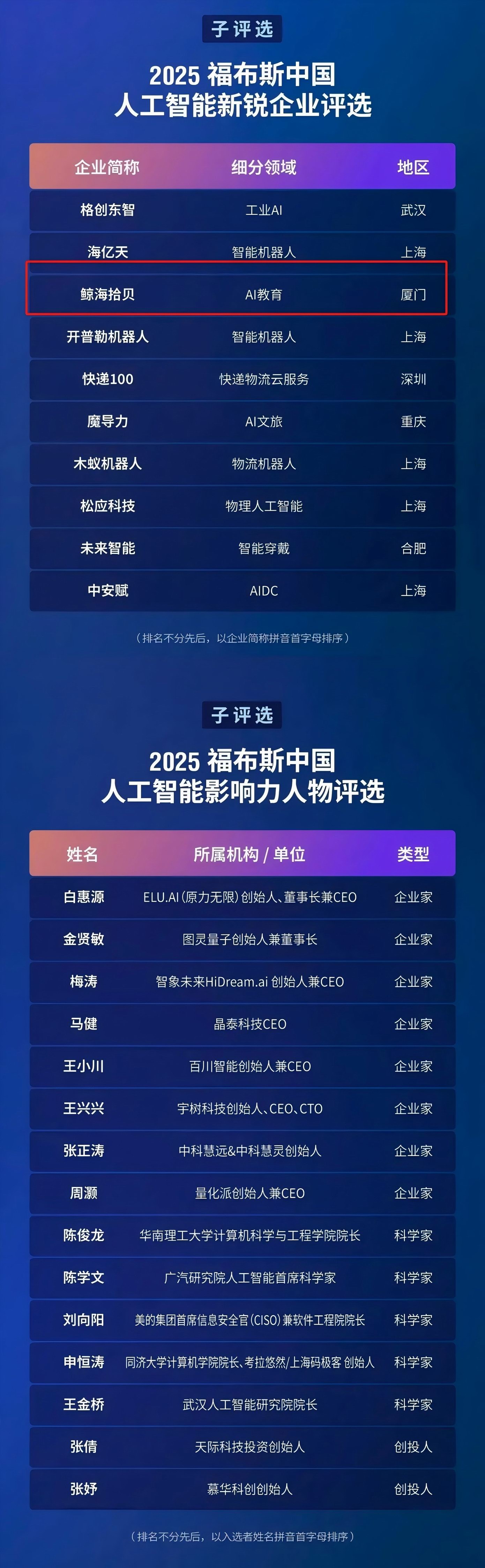 鲸海拾贝上榜2025福布斯中国人工智能新锐企业