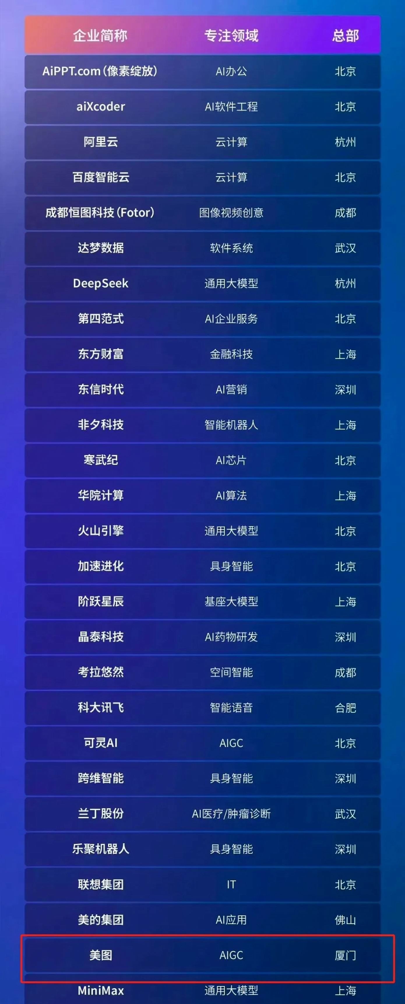 厦门企业美图公司、鲸海拾贝分别上榜“50强”主榜单和“人工智能新锐企业”子榜单