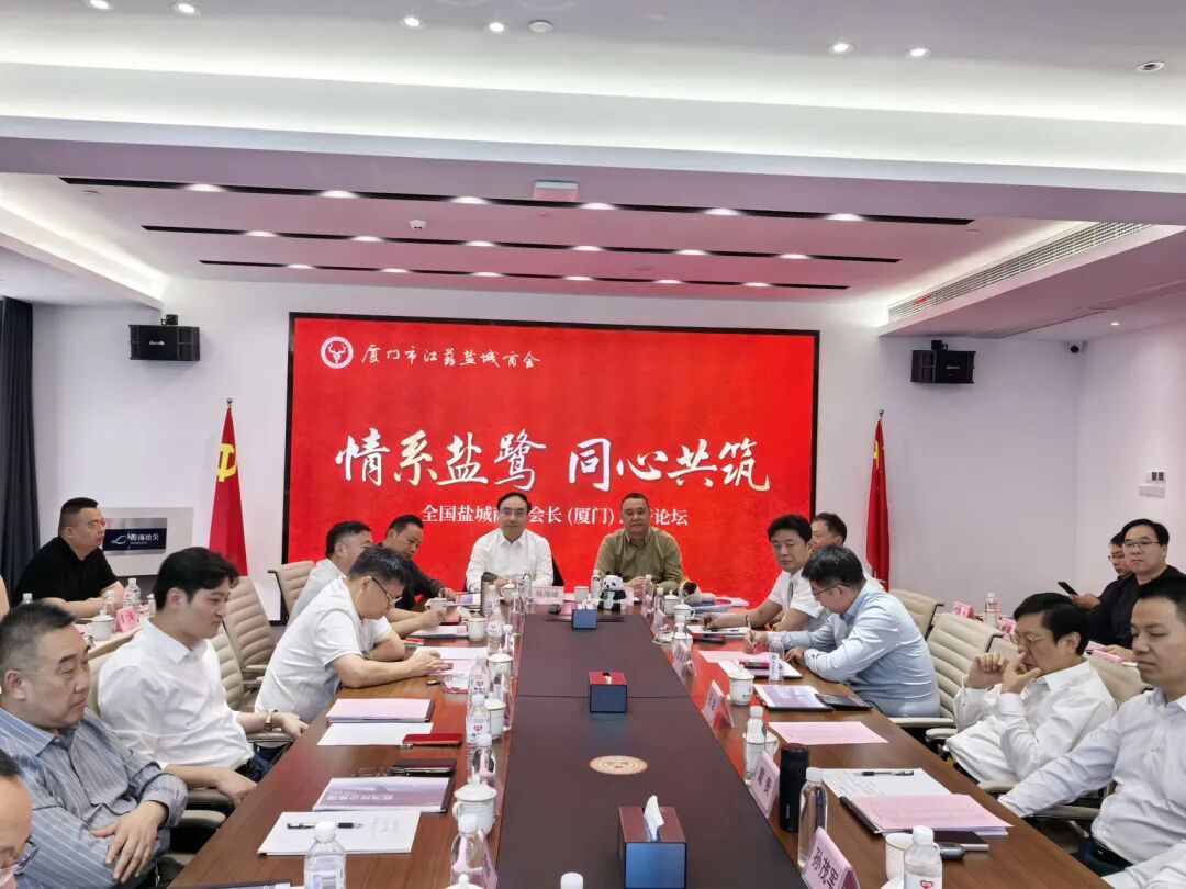 24日下午,全国盐城商会会长经济论坛在厦门市江苏盐城商会荣誉会长孙胜董事长的企业——鲸海拾贝隆重召开。