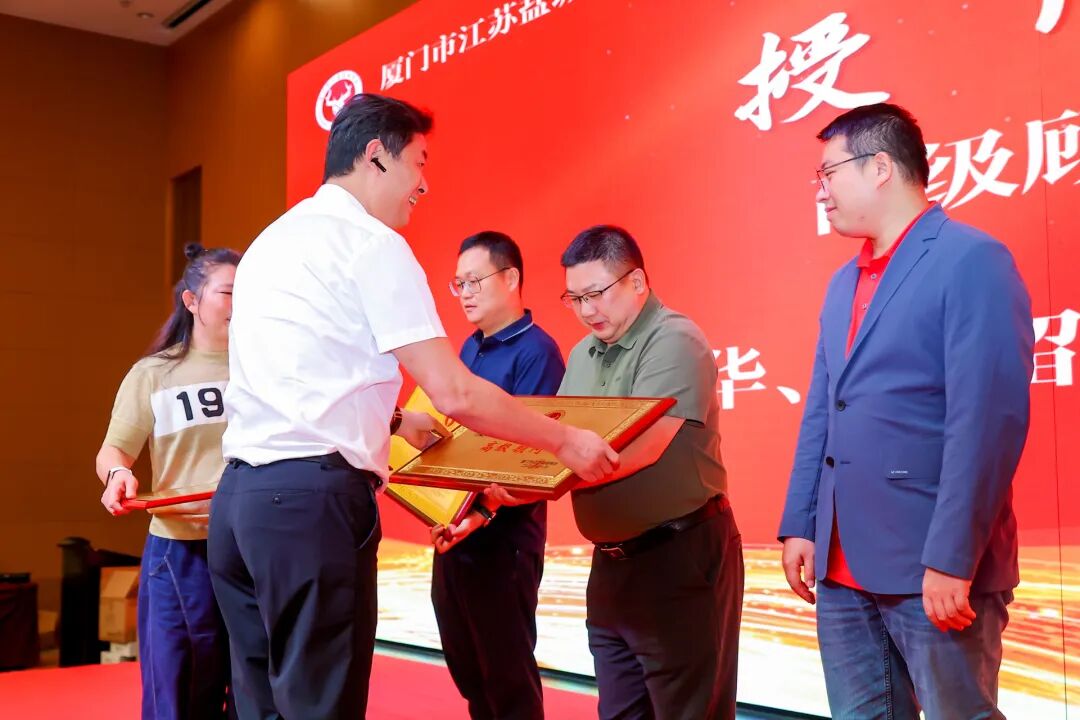 晚宴进入了庄严而激动的授牌环节。商会执行会长、副会长、荣誉顾问、资深顾问、高级顾问、文化艺术顾问、理事、会员等依次上台接受牌匾。这不仅是一份荣誉,更是一份沉甸甸的责任,标志着厦门盐城商会的组织架构日益完善,力量不断壮大。