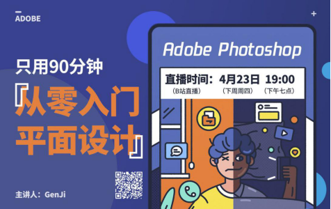 课程简介:你是否曾经对好看的平面设计怦然心动?这次90分钟的直播课程,我们用烂大街的题目来干货满满的介绍大一统的设计工具&技巧,90分钟走进平面设计;用Adobe Photoshop等视觉钥匙让你的灵感具象,本次讲座将由《Photoshop cc 2020 实战教程》的第一作者GenJi,带大家通过大量实践经验来硬核堆砌实战技巧。