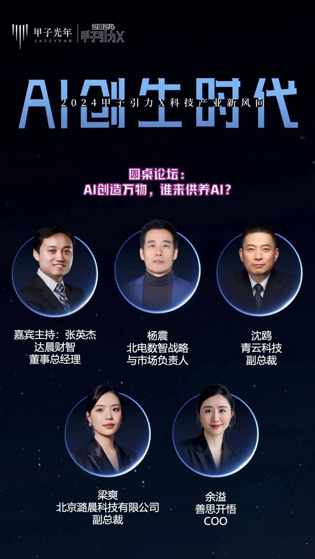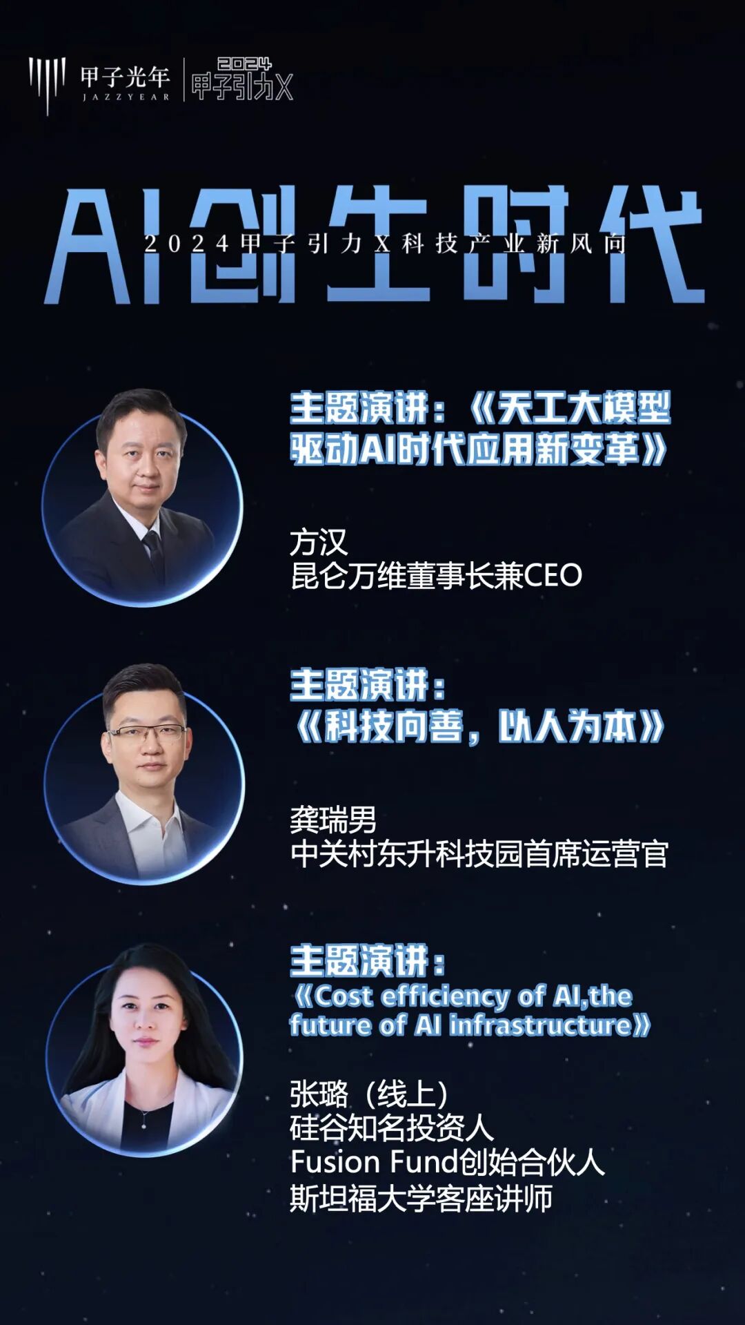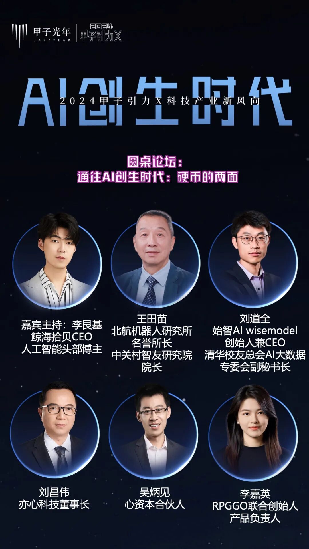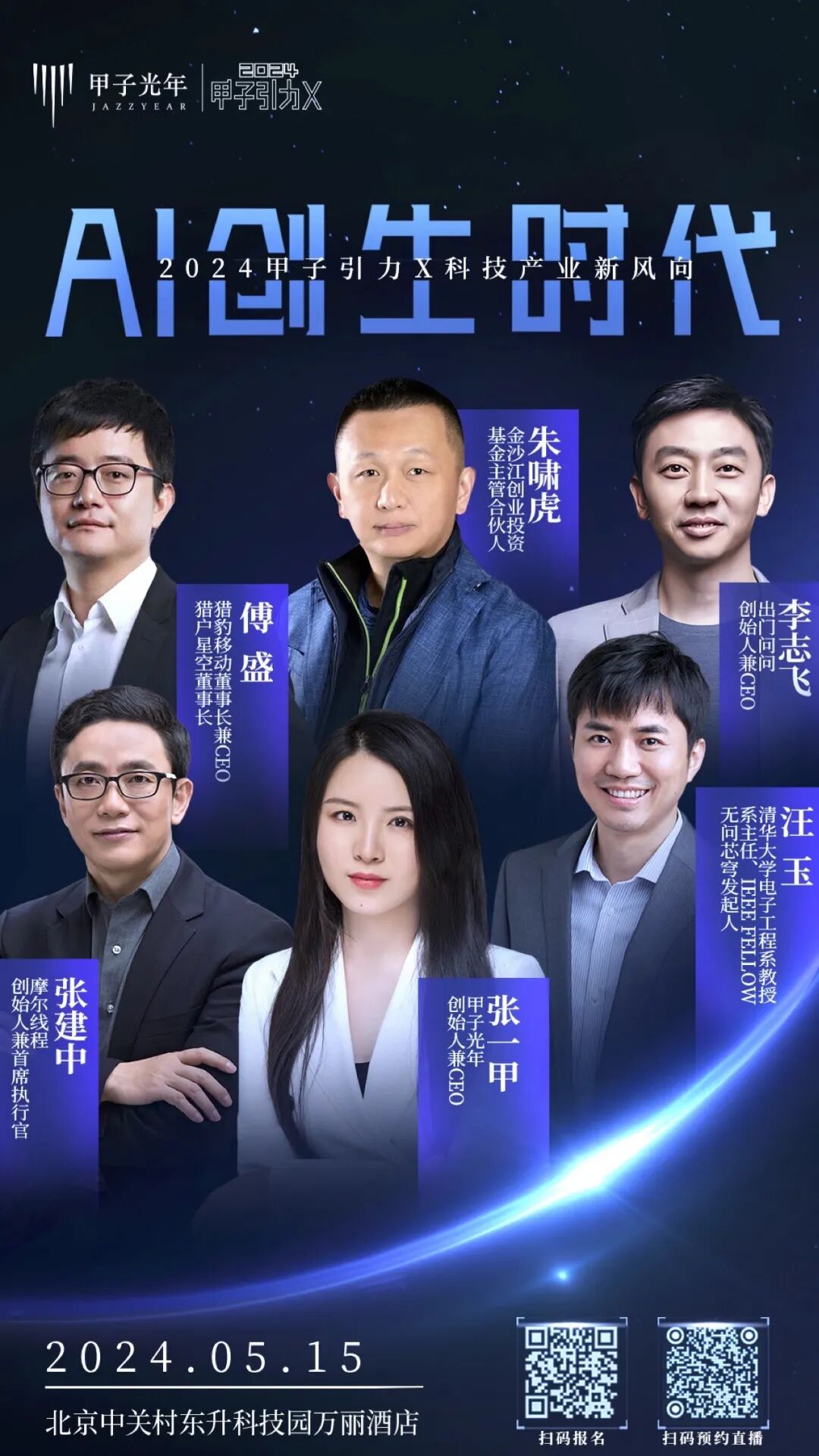 大会当天上午,金沙江创业投资基金主管合伙人 朱啸虎、猎豹移动董事长兼CEO、猎户星空董事长 傅盛、出门问问创始人兼CEO 李志飞、清华大学电子工程系教授、系主任、国家自然科学基金杰青、IEEE Fellow、无问芯穹发起人 汪玉、摩尔线程创始人兼首席执行官 张建中,5位各具特色、对比鲜明的嘉宾将共聚一堂,与甲子光年创始人&CEO张一甲进行一场高视野的巅峰对话,一起探讨《中国人工智能的新范式、新拐点》。