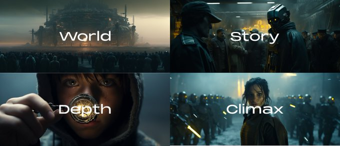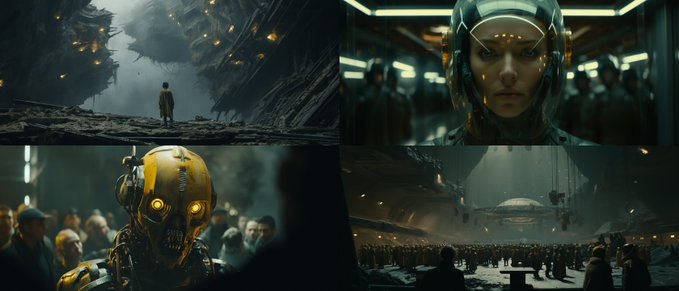 然而科幻世界观背后却有着更科幻的故事——这部“预告片”从画面、动态镜头到整个视频,所有内容都是由AI生成的!