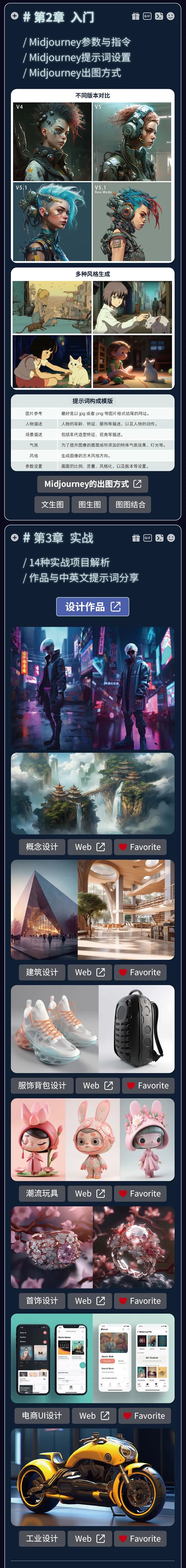 这是一本Midjourney图像创作指南。全书共3章,第01章为Midjourney简介,带领读者初步认识AI艺术和Midjourney,介绍了Midjourney的安装和简单操作;第02章为Midjourney入门,介绍了如何设置提示词,以及Midjourney的相关参数设置、指令工具和出图方式;第03章为Midjourney实战,包括生成设计作品、生成绘画作品和生成摄影作品。本书详细介绍了Midjourney的基本功能、操作方法和实际应用,没有美术基础,甚至没有英语基础的读者在阅读本书后,也可以使用Midjourney创作出属于自己的作品。本书适合对AI图像创作感兴趣的读者和有AI图像创作需求的设计师、插画师等阅读参考。