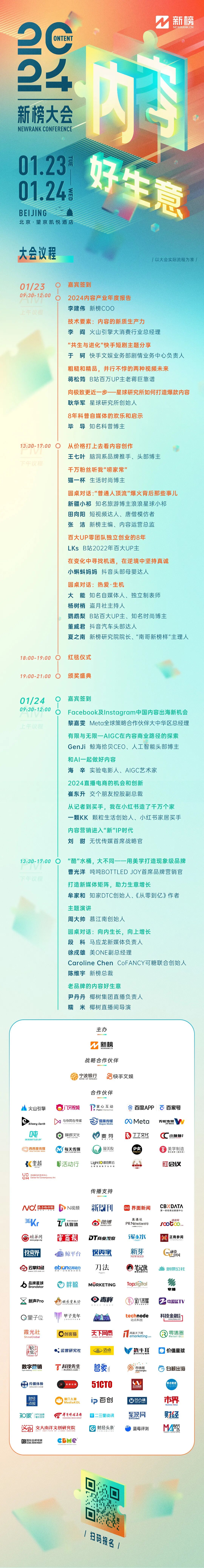 2024新榜大会,我们将继续拿出最大诚意,诚挚欢迎知名企业品牌、内容平台方、内容工具及服务方、MCN机构和KOL们共襄盛举,进行赞助、植入、传播等各方面商务合作。也欢迎媒体同仁加入这场行业峰会,联手媒体传播合作。