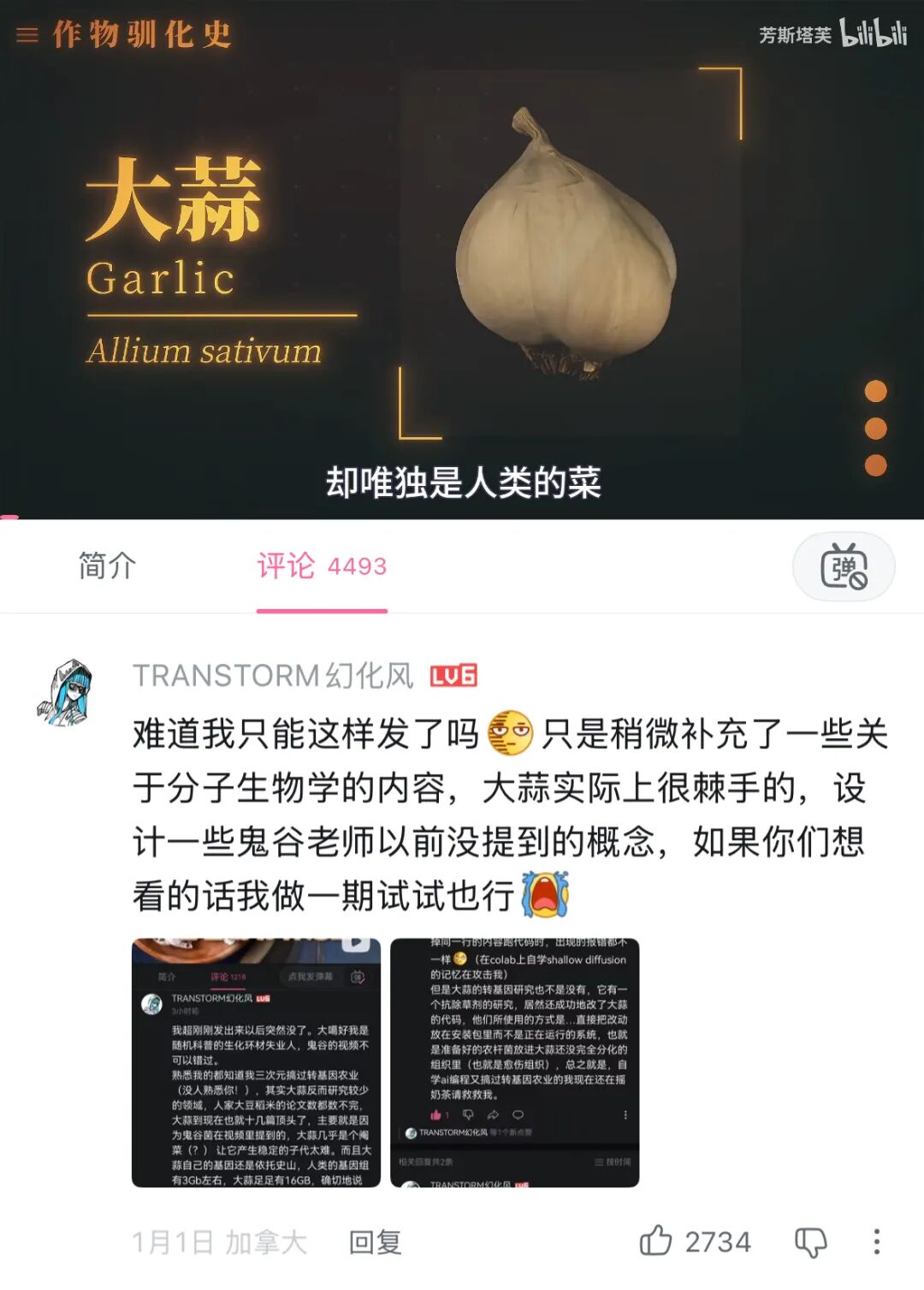 在一期大蒜科普的评论区,一位从事过基因转农业行业的粉丝顺着视频内容,补充了大蒜基因研究的相关内容。这条评论获得了超过2690个赞,以及116条回复,也让鬼谷藏龙眼前一亮。